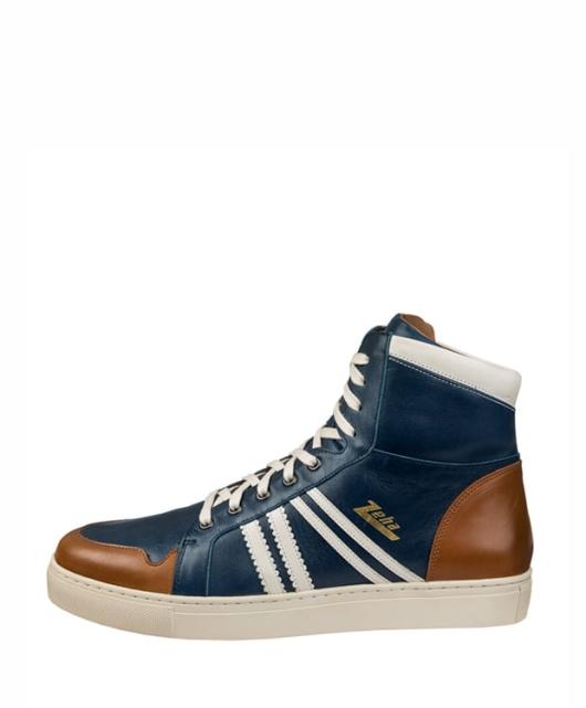 Zeha Berlin Streetwear | Herren Basketballer Sneaker Blau Cremeweiß Cognac Online Kaufen