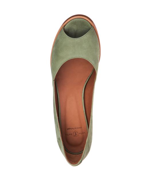 Diese Peeptoe-Pumps sind zeitlose Klassiker, die jedes Outfit upgraden. In Olivgrün wirken sie frühlingshaft und modern. Der breite 6,5-cm-Trichterabsatz in Leder-Optik sorgt für festen Halt sowie angenehmen Tragekomfort und verleiht schlichte Eleganz. Außen sind die Peeptoes aus feinstem Nobuk-Kalbsleder gefertigt, dass sich besonders samtig anfühlt. Für das Futter wurde weiches Kalbsleder verwendet. Die Schuhe kommen in einem praktischen Aufbewahrungsbeutel.