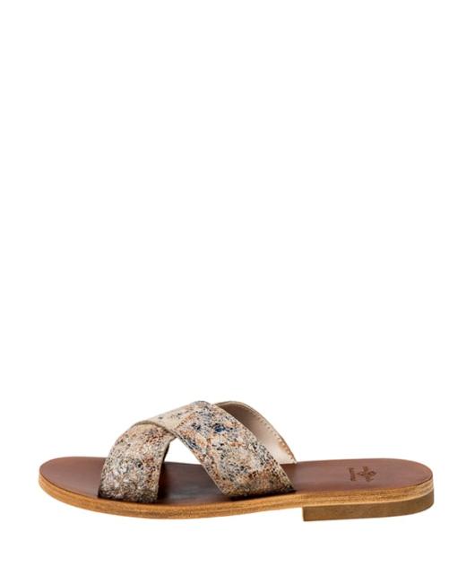 Bei dieser leichten Kalbsleder-Pantolette in Multicolour kreuzen sich zwei breite Lederriemen über dem Fußrücken. Das schlichte Design wirkt minimalistisch-elegant und kann sowohl chic als auch lässig kombiniert werden. Eine Vollledersohle und der gummierte flache Absatz geben dem Fuß einen festen Aufsatz. Die Schuhe kommen in einem praktischen Aufbewahrungsbeutel.