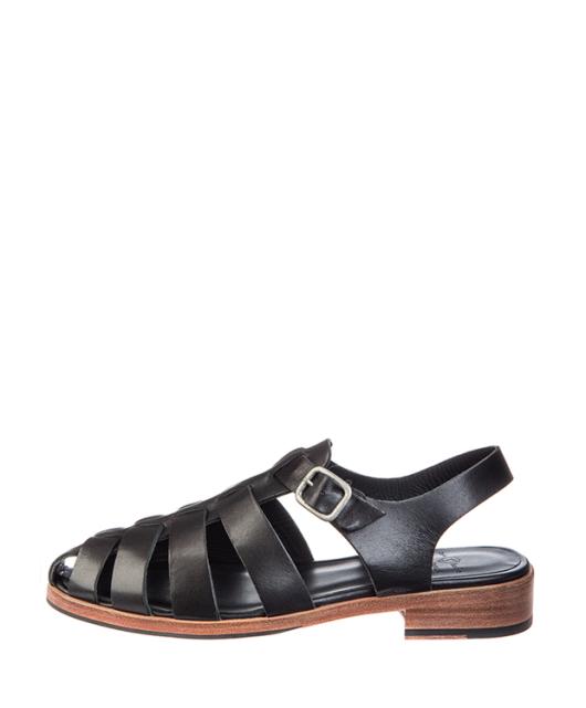 Diese beliebten Sandalen waren ursprünglich ein Männermodell, das für Frauen neu entworfen wurde. Ihr Design mit den breiten Riemen in Schwarz verleiht einen angesagten Retro-Look. Ihr 2,2 cm hoher Absatz ist zur Hälfte mit einer rutschfesten Gummisohle versehen und bietet Halt sowie Tragekomfort. Für das Außenmaterial sowie das Futter wurde hochwertiges Kalbsleder verwendet.