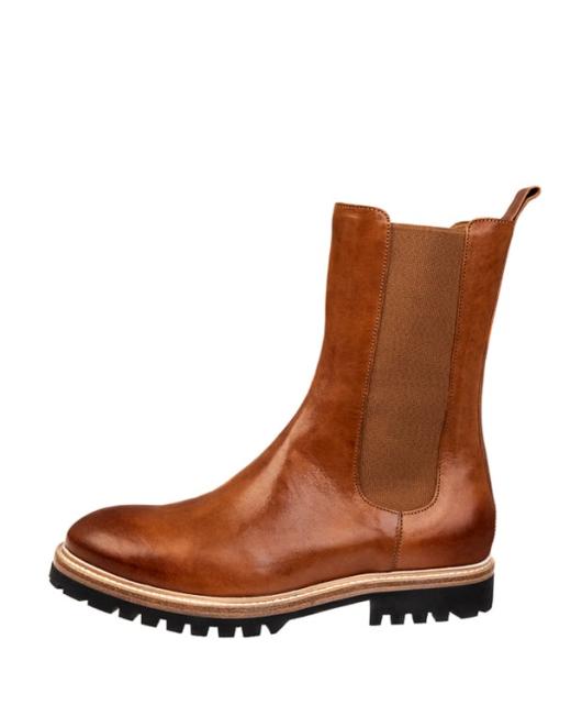 Klassische Chelsea Boots sind ein absolutes Must-have. Dieses Paar von Zeha besitzt eine abgesetzte Kappe und ist aus vegetabilem cognacfarbenen Kalbsleder gefertigt und gefüttert. Durch die charakteristischen elastischen Einsätze wird der Einstieg erleichtert. Die Ledersohle mit Laufgummi und der kleine Absatz bieten optimalen Tragekomfort. Die Schuhe kommen in einem praktischen Aufbewahrungsbeutel. Handgefertigt in Portugal.
