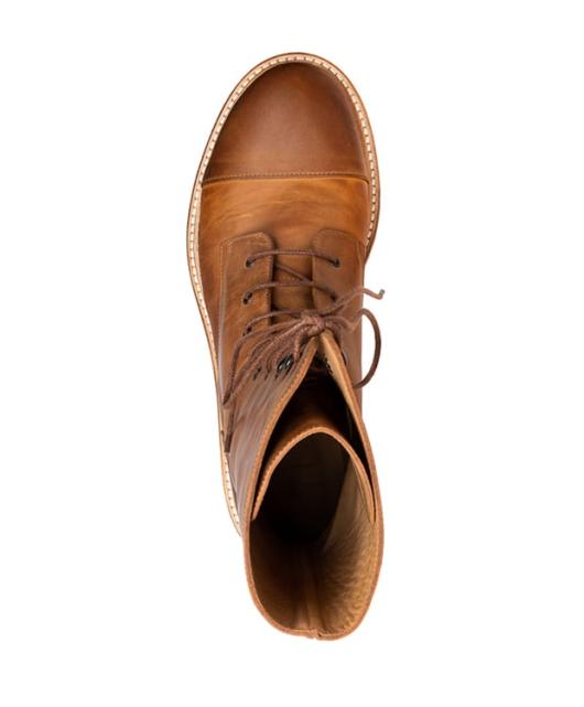 Diese hohen Lederstiefel mit schmaler Silhouette sind echte Hingucker. Gefertigt aus robustem, vegetabilem Kalbsleder in Cognac verleihen diese Schnürstiefel jedem Look rockige Vibes. Die Ledersohle mit Laufgummi und der kleine Absatz bieten optimalen Tragekomfort. Die Schuhe kommen in einem praktischen Aufbewahrungsbeutel. Handgefertigt in Portugal.