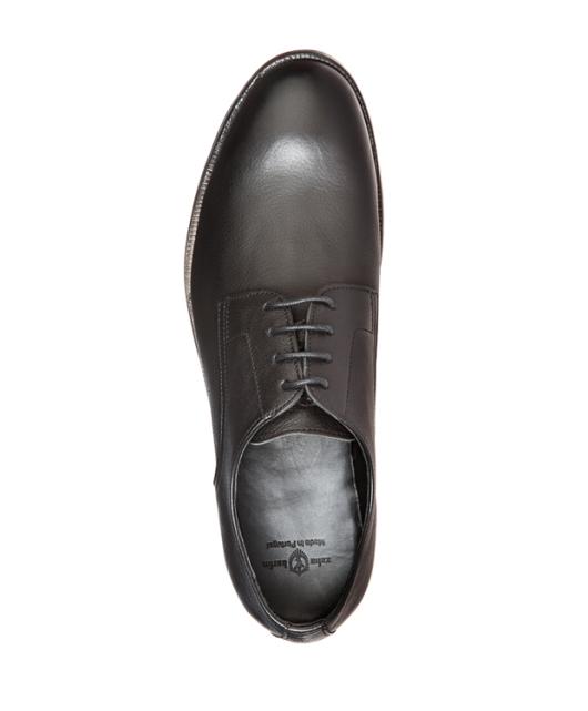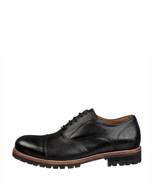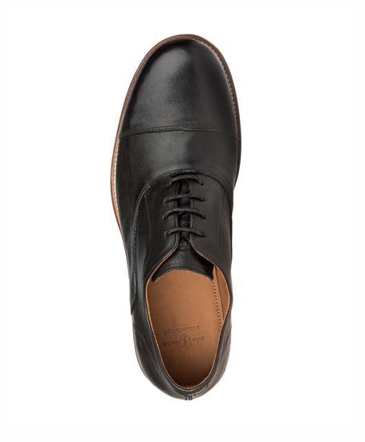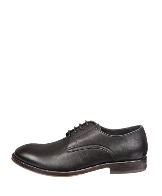 Ein zeitloser Plain Toe Derby mit abfallender Schuhspitze aus gewachstem und geöltem Rindsleder, das in der Endverarbeitung leicht poliert wurde. Dies gibt der Oberfläche einen Glanzeffekt. Runde Schnürsenkel schnüren die 4-Loch Leiste.