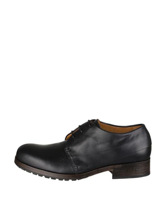 Plain Toe Derby mit runder Vorderkappe im 20er-Jahre Stil aus gewachstem vegetabilem KalbslederKlassische 4-Loch-Schnürung mit dickeren Schnürsenkeln.